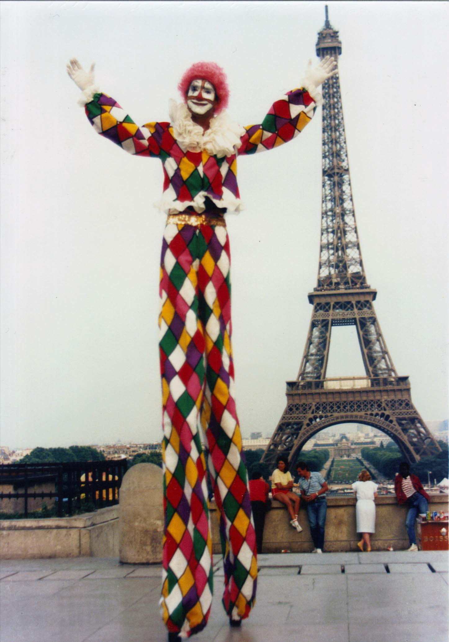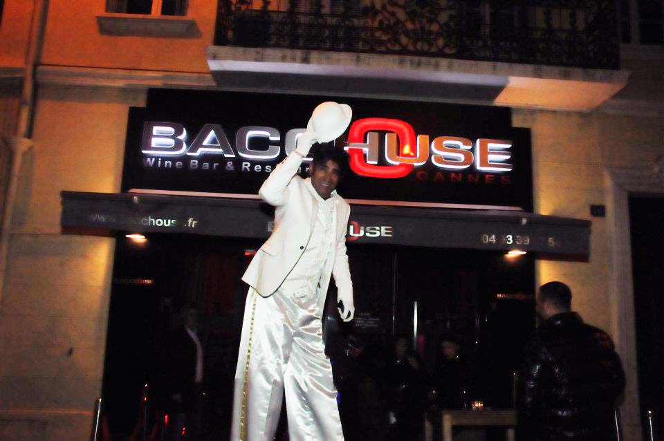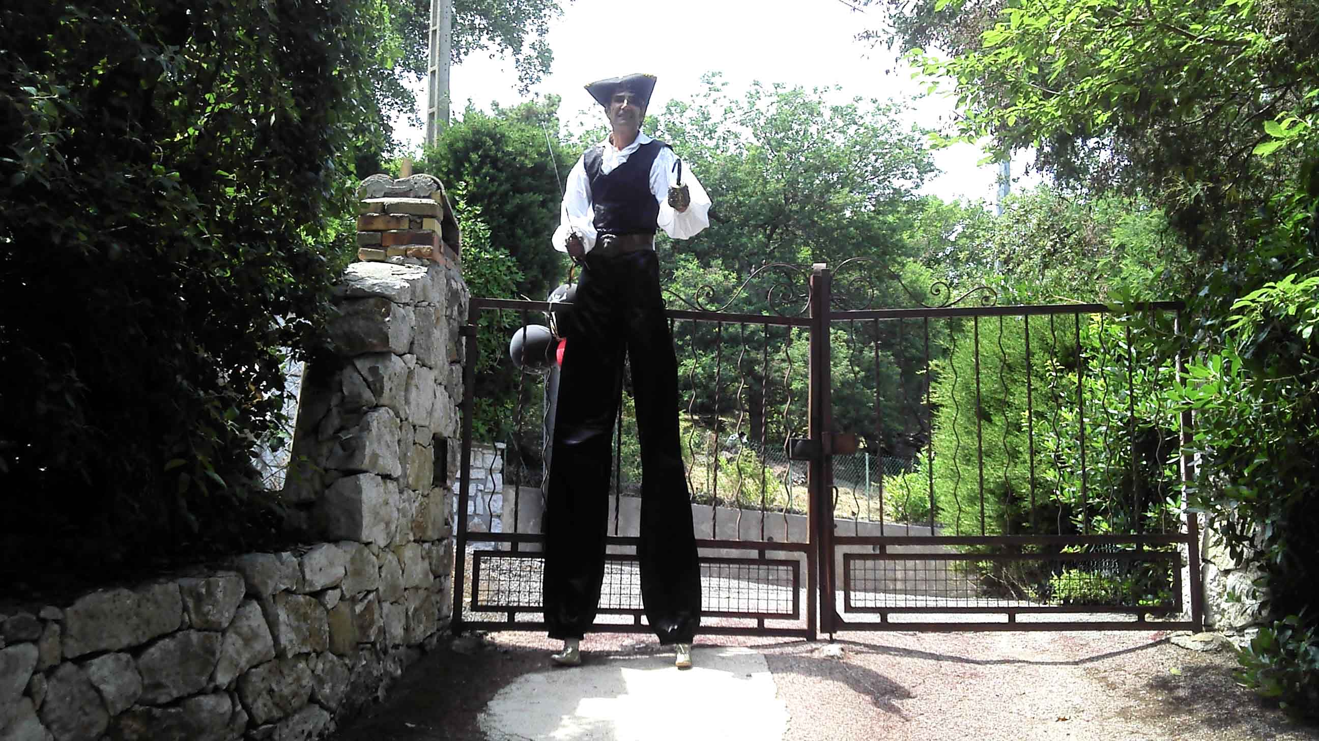 Du haut de ses Echasses, Mike accueil agréablement les invités d’une soirée ou bien, fait de la déambulation en Animation de Rue.